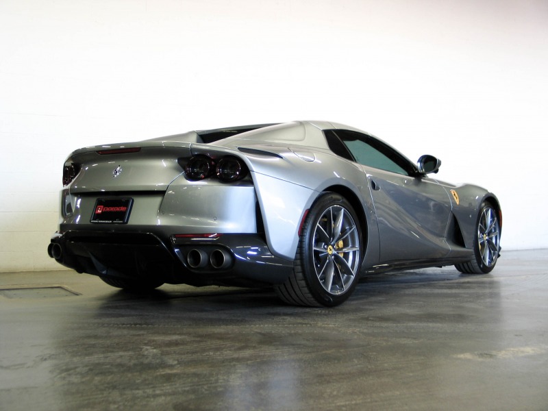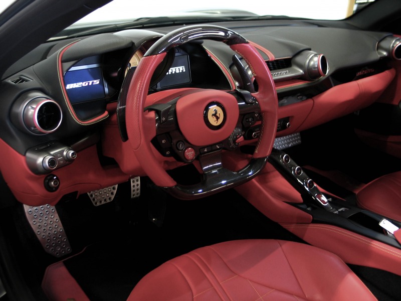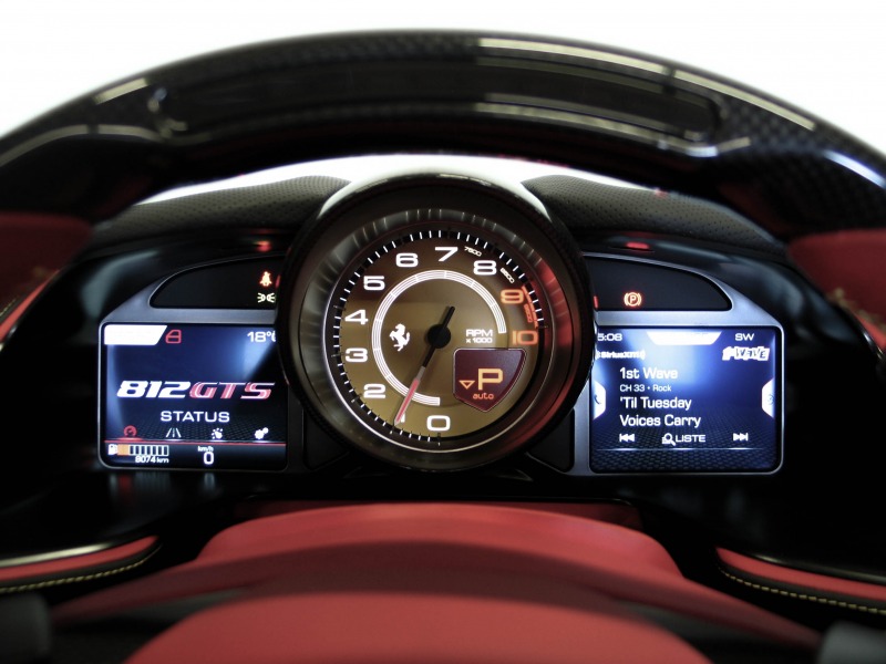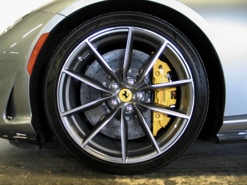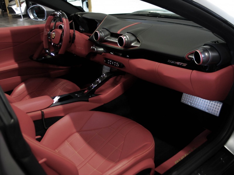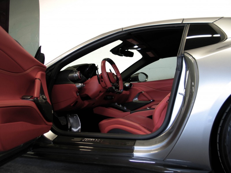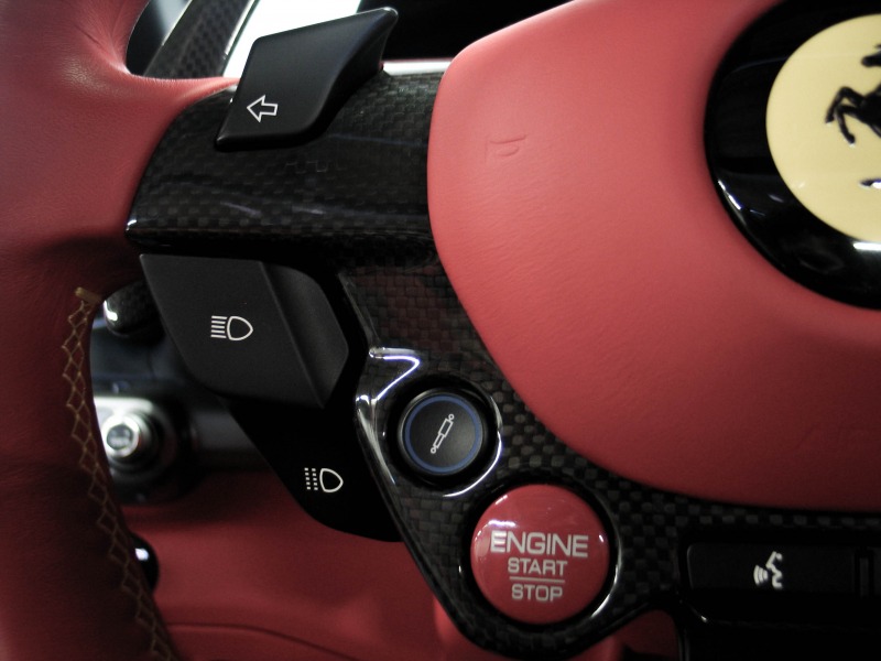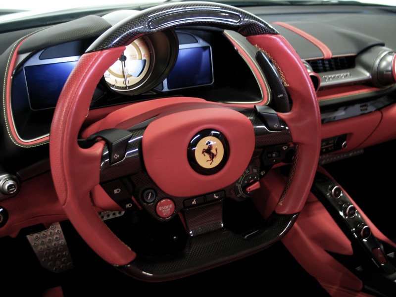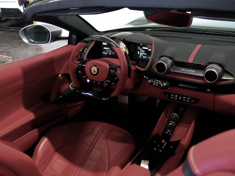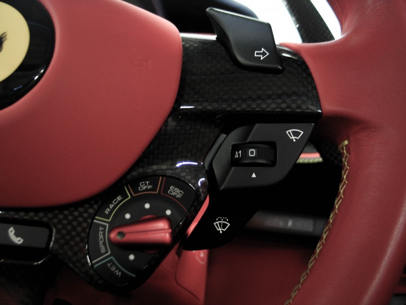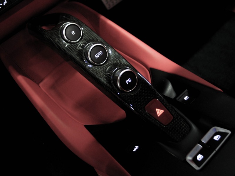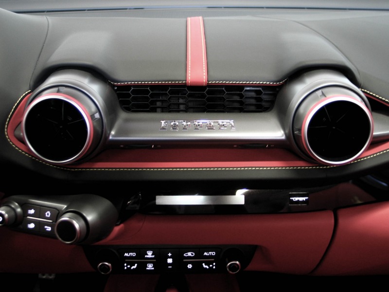 Apple CarPlay, Leather upholstered seat backrest, Back radar, Yellow brake calipers, Titanium exhaust pipes, Advanced front driving camera, Diamond polished forged wheels, High-power hi-fi system, Quilted-style seats, Surround View, Rosso Ferrari Leather interior, including lower dashboard, rear shelf, door panel, steering wheel. Yellow Cavallino stiitched into headrests. Tastefully trimmed with carbon fibre: front bumper insert, front spoiler, underdoor cover, driver zone, central bridge, rear diffuser, rear side bumper. Valved exhaust kit.